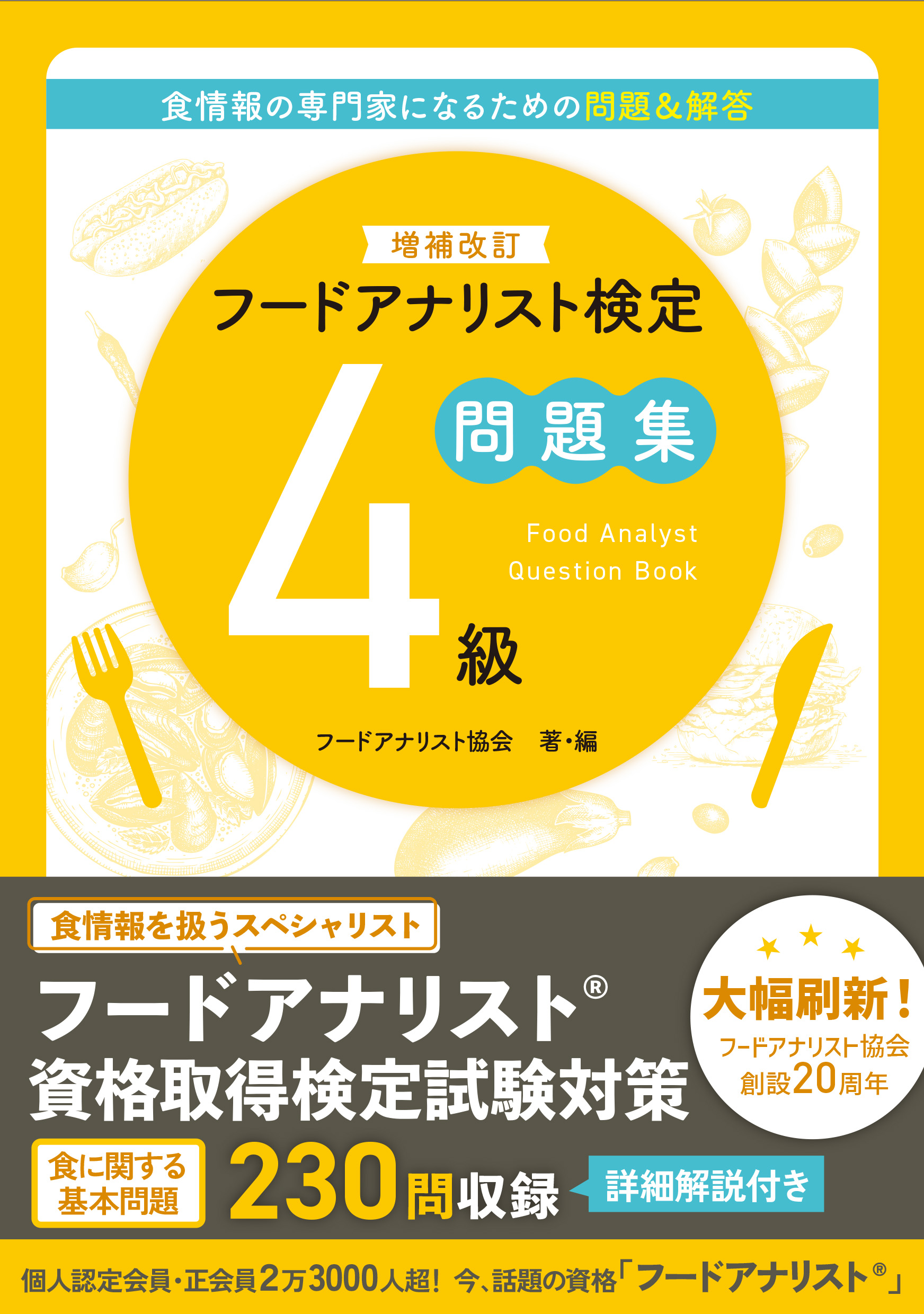 フードアナリスト検定教本4級と「食」情報インフルエンサーの教科書に添った、検定受験者向け問題集です。食に関する基本問題が230問、解説付きで収録されています。